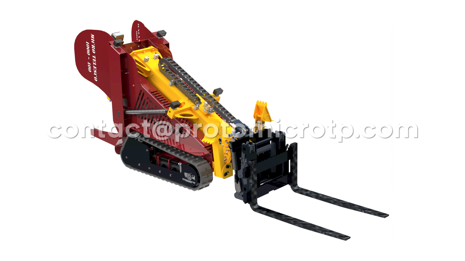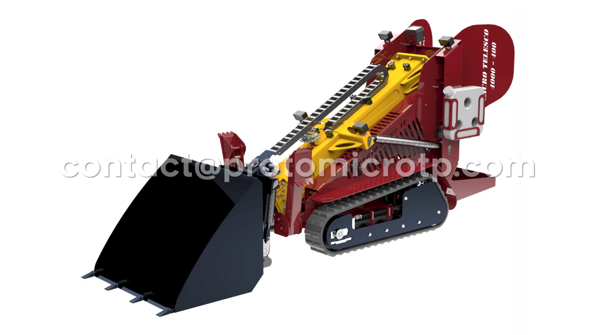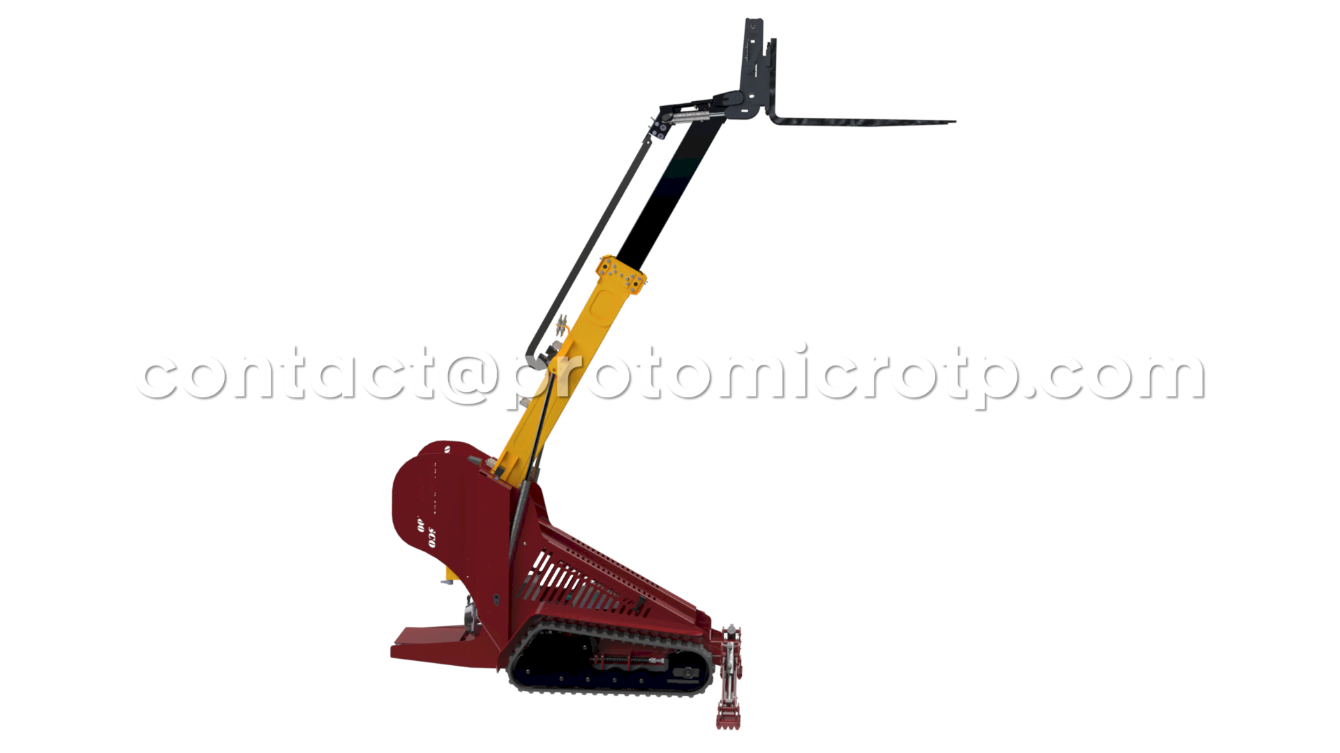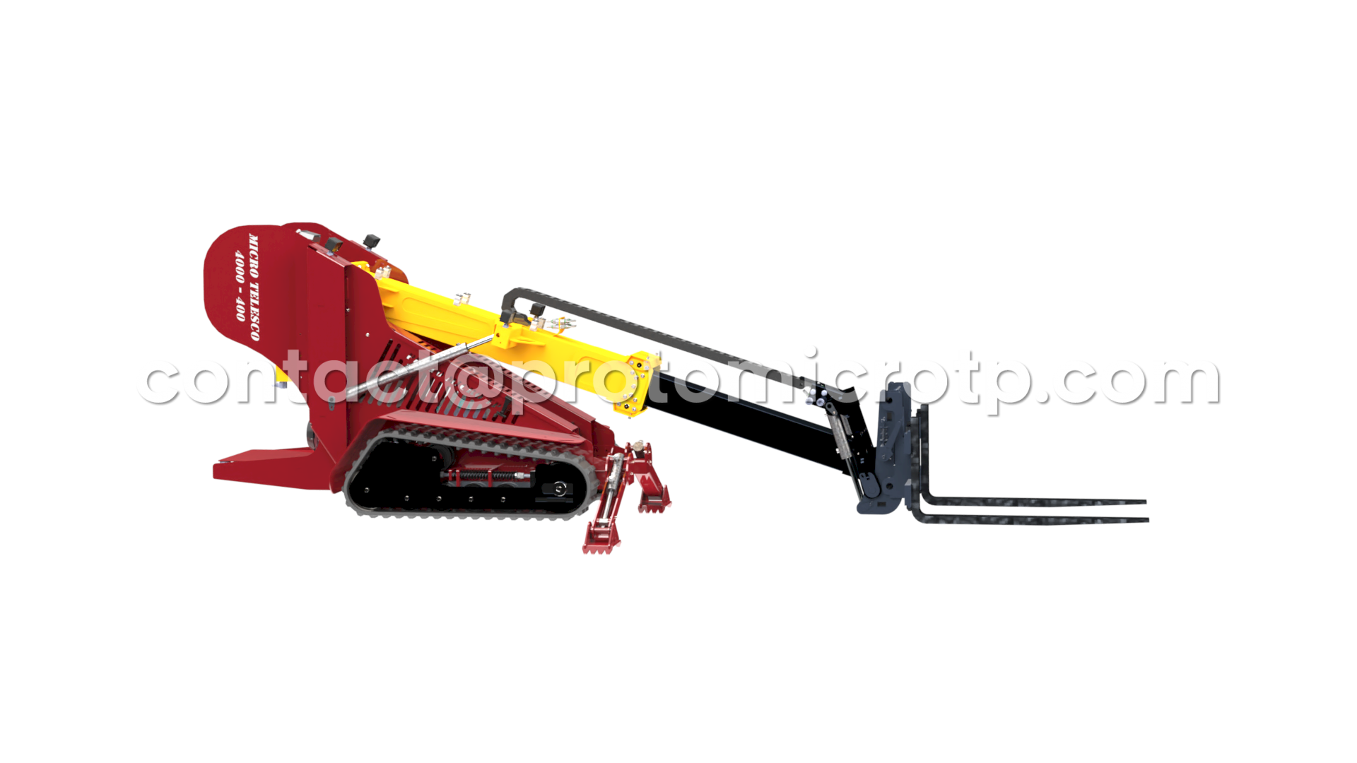 ProtoMicroTP est fier de vous présenter le Micro-Télescopique MTLC 4000-400. Avec une largeur de 115 cm, ce modèle, conçu et développé dans nos ateliers, est la réponse à une demande de polyvalence : charger, niveler, lever des charges, transporter, déblayer, et bien plus encore.