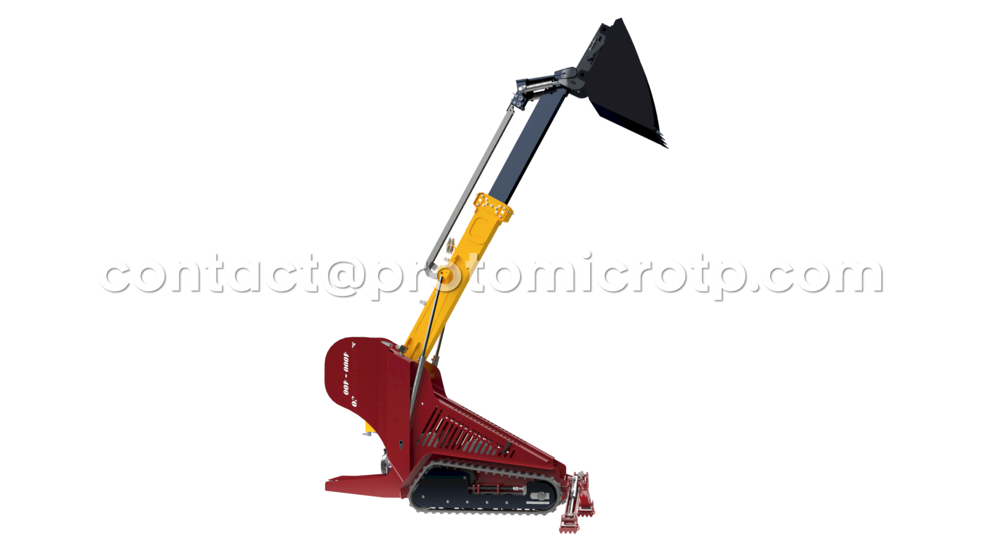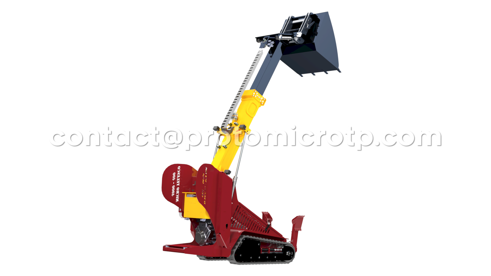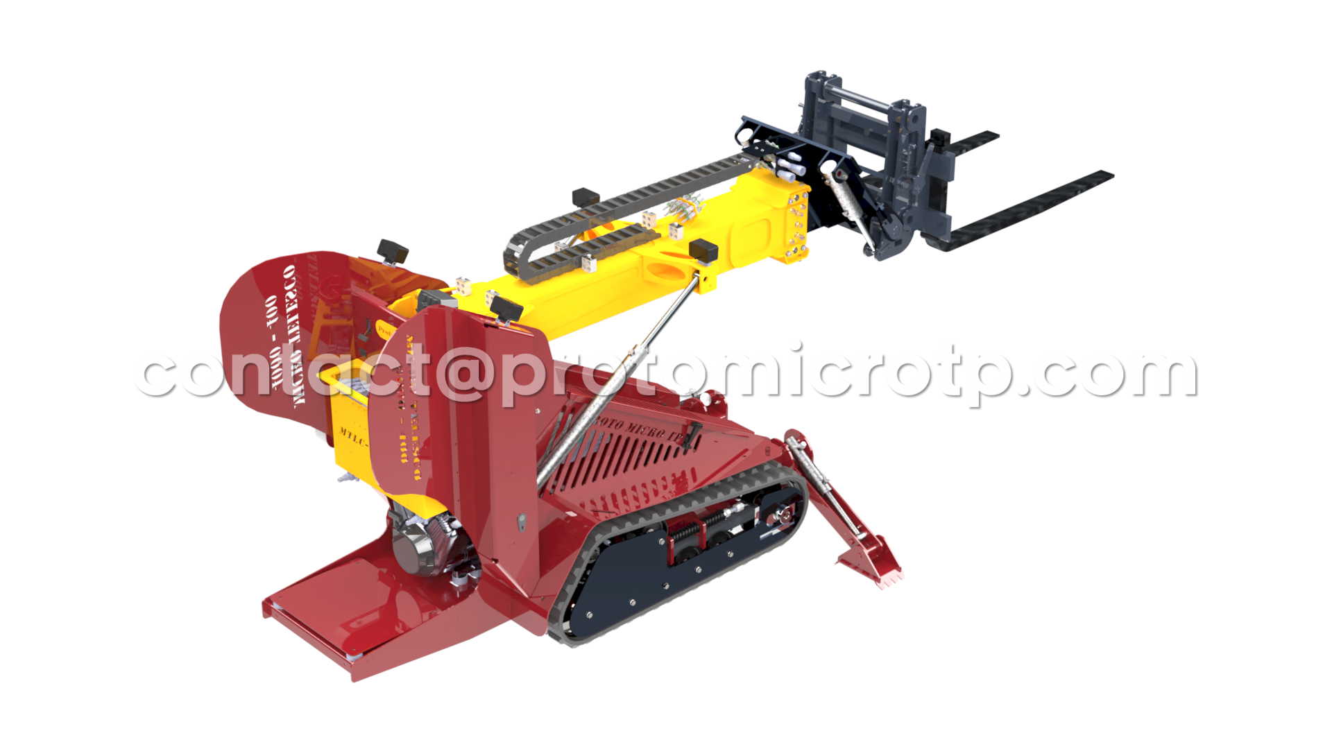 ProtoMicroTP est fier de vous présenter le Micro-Télescopique MTLC 4000-400. Avec une largeur de 115 cm, ce modèle, conçu et développé dans nos ateliers, est la réponse à une demande de polyvalence : charger, niveler, lever des charges, transporter, déblayer, et bien plus encore.