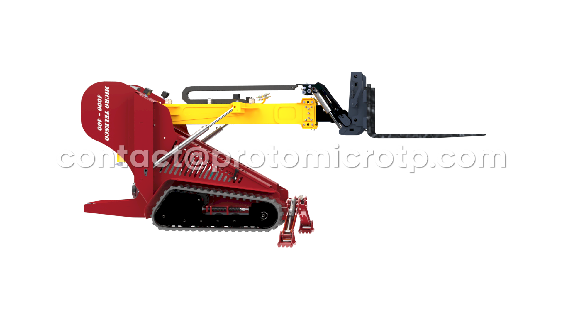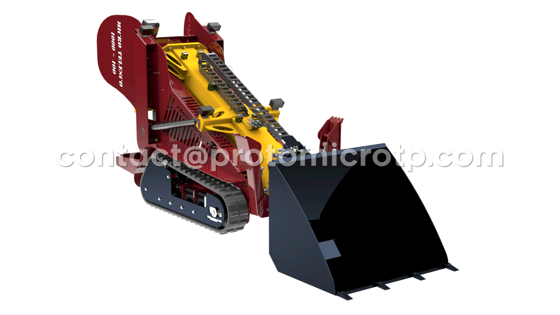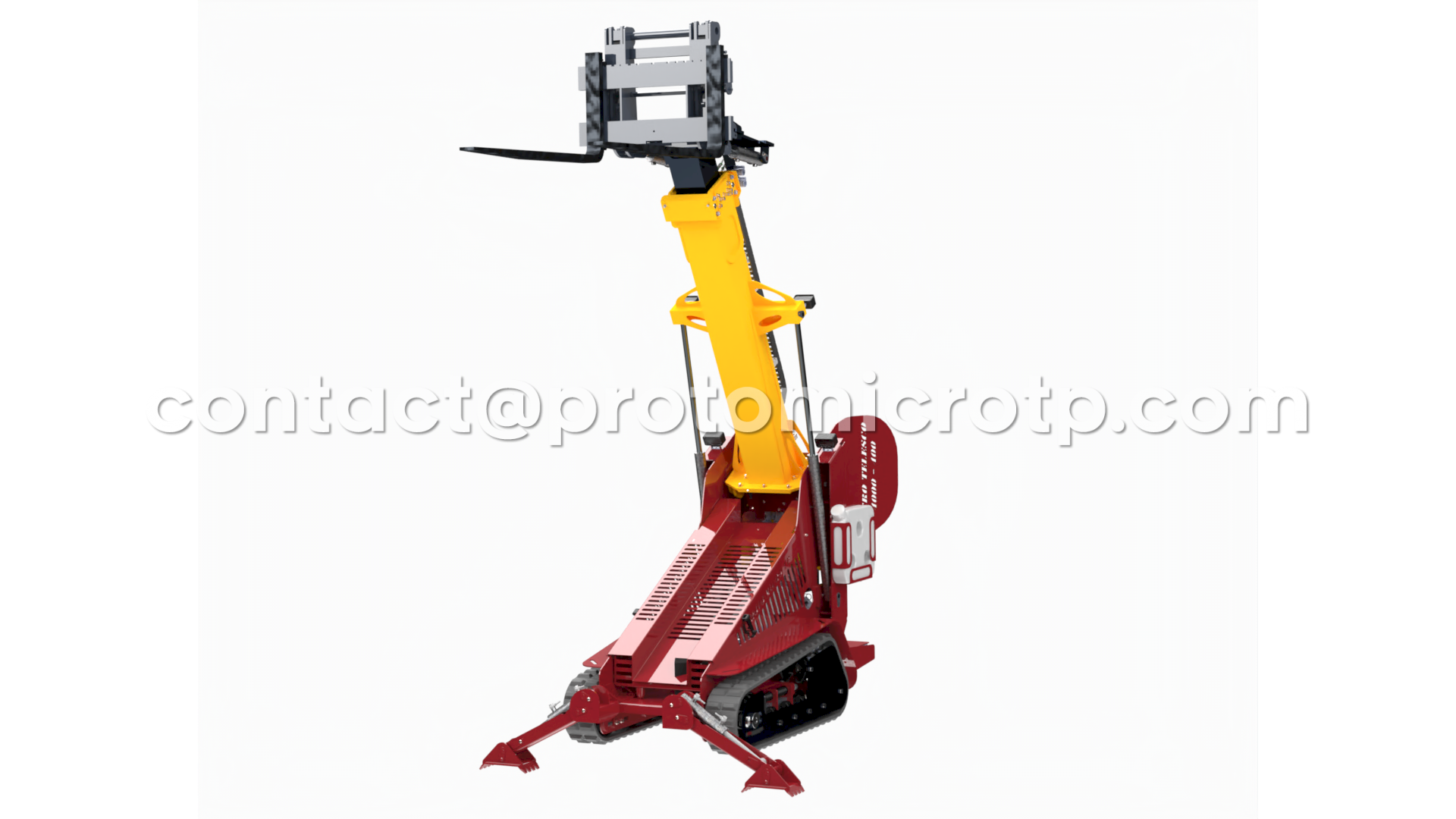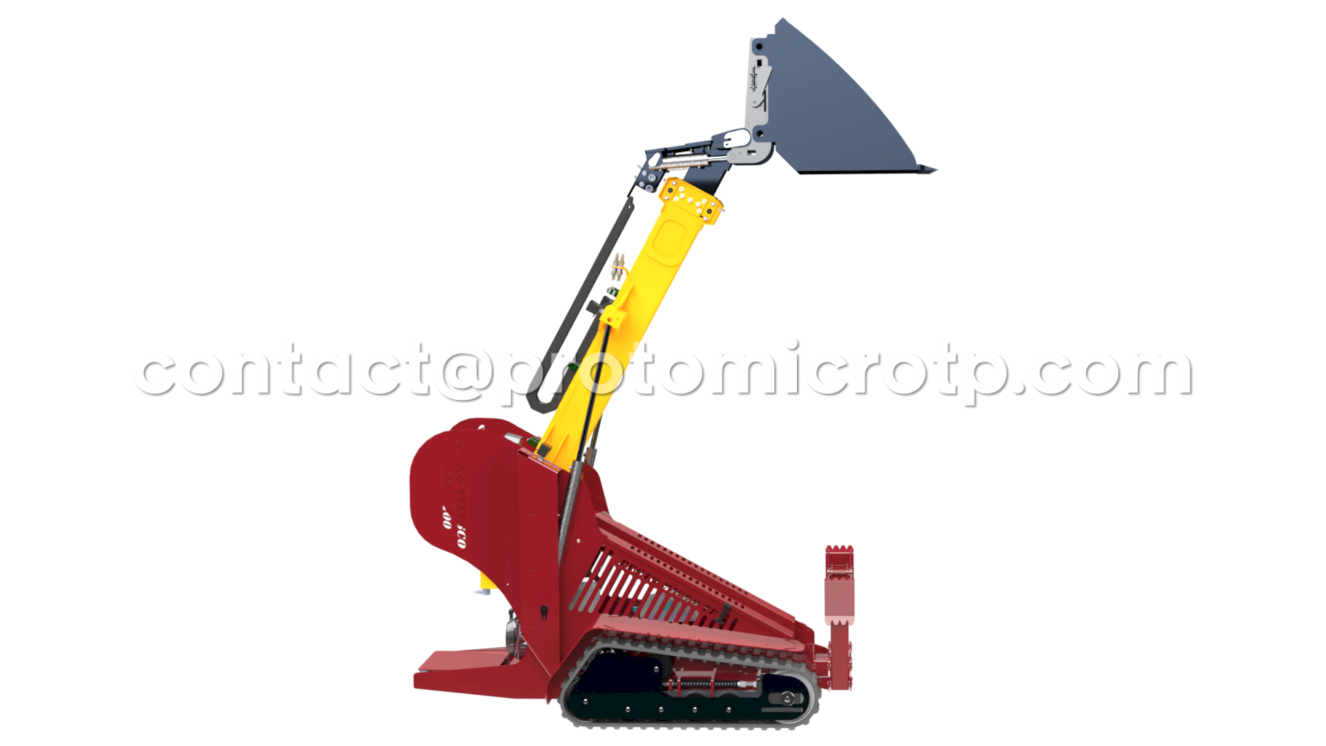 ProtoMicroTP est fier de vous présenter le Micro-Télescopique MTLC 4000-400. Avec une largeur de 115 cm, ce modèle, conçu et développé dans nos ateliers, est la réponse à une demande de polyvalence : charger, niveler, lever des charges, transporter, déblayer, et bien plus encore.