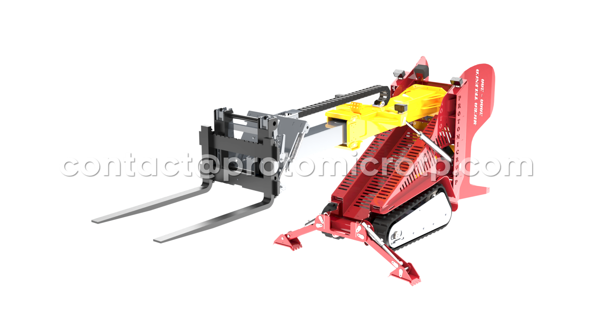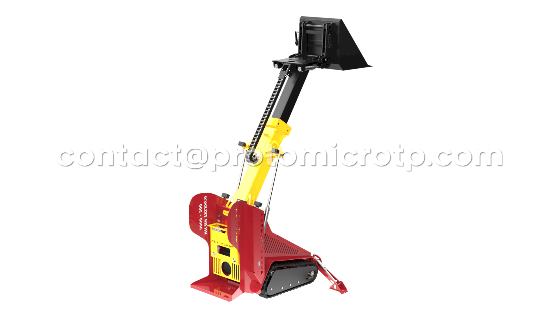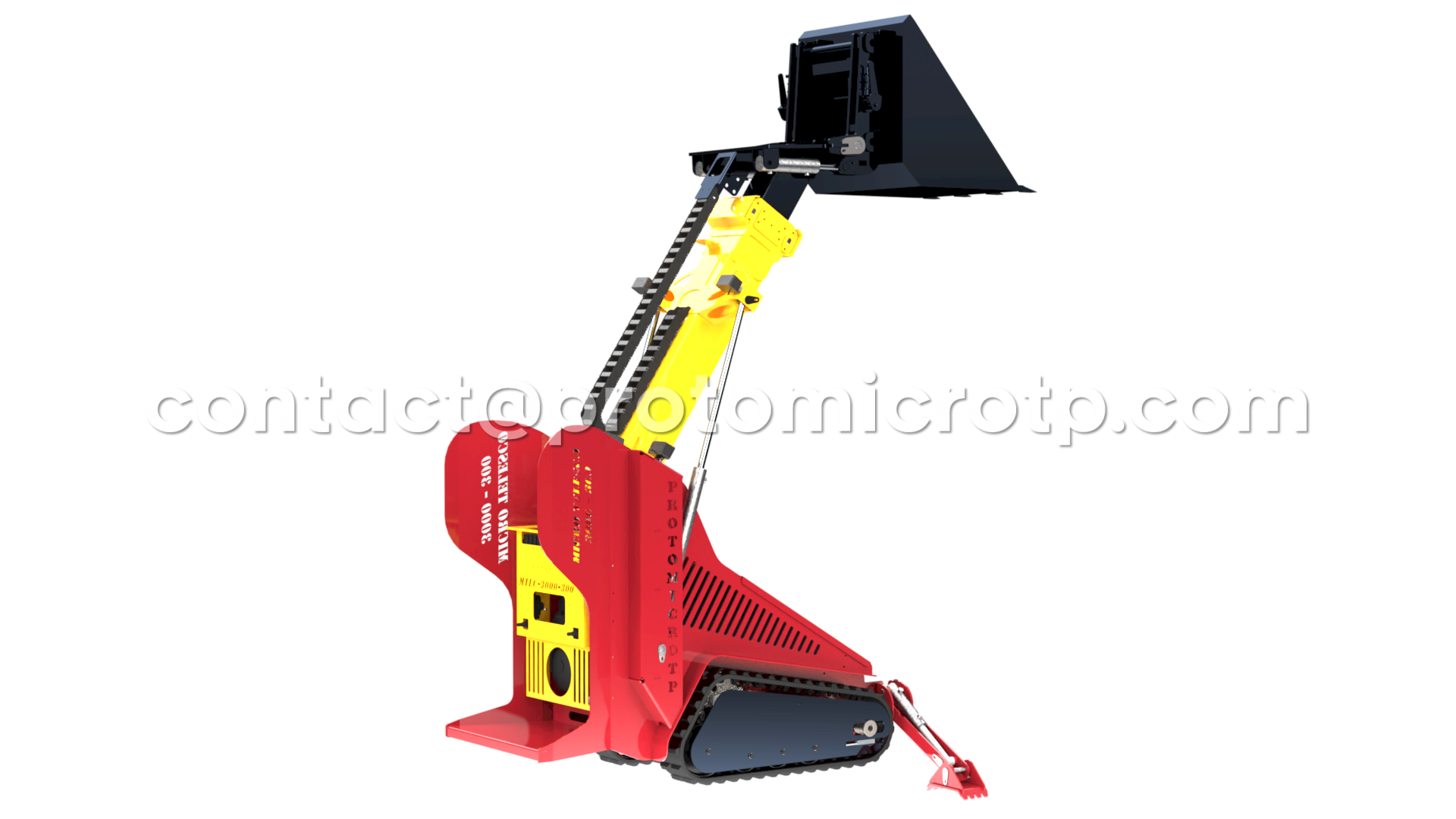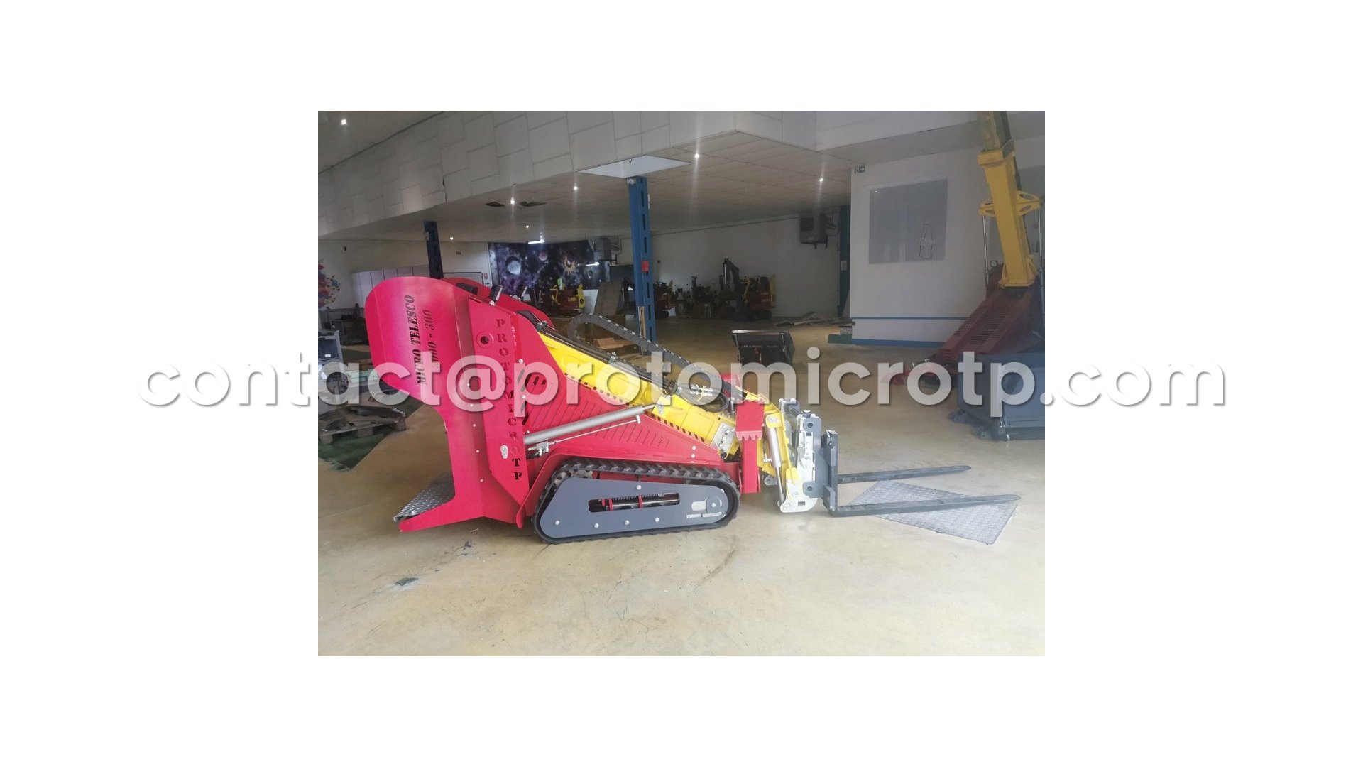 ProtoMicroTP est fier de vous présenter le Micro-Télescopique MTLC 3000-300. Avec une largeur de 85 cm, ce modèle conçu et développé dans nos ateliers est la réponse à un besoin de polyvalence. Il permet de charger, niveler, lever des charges, transporter, déblayer, et bien plus encore.