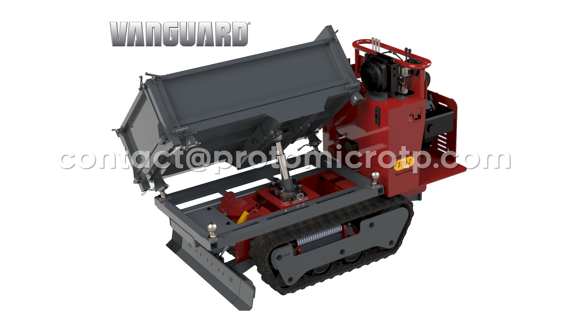 Le Dumper 750 kg " MicroDump' 750" , est une brouette à chenilles pouvant aller sur touts types de terrains, sa capacité de charge lui permet de prendre jusqu'a 750 kg et de déverser son contenu par bennage hydraulique, il permet de charger ou décharger des charges jusqu’a une hauteur de 1,40m grâce à son élévatrice optionnelle.