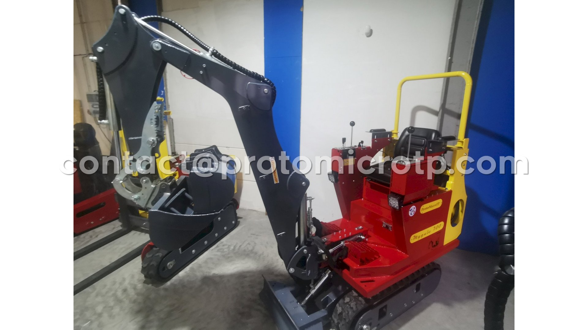 Conçue pour répondre aux besoins des particuliers et des petits professionnels, la Mygale 700 est idéale pour les travaux de terrassement et d'aménagement. Elle dispose d'un refroidisseur hydraulique pour une utilisation prolongée, même dans les régions chaudes. Elle est également équipée d'un siège grand confort avec une sécurité de coupure moteur, d'un moteur Briggs & Stratton de 15 ch, d'un arceau de sécurité Canopi, d'une ligne hydraulique d'accessoires, d'une attache rapide pour les godets, d'un pouce mécanique de série, ainsi que de deux phares de travail à LED de 100W. Avec sa force d'arrachement au balancier de 1,6 t, elle se distingue par sa puissance, rivalisant avec des machines de tailles supérieures sur le marché.