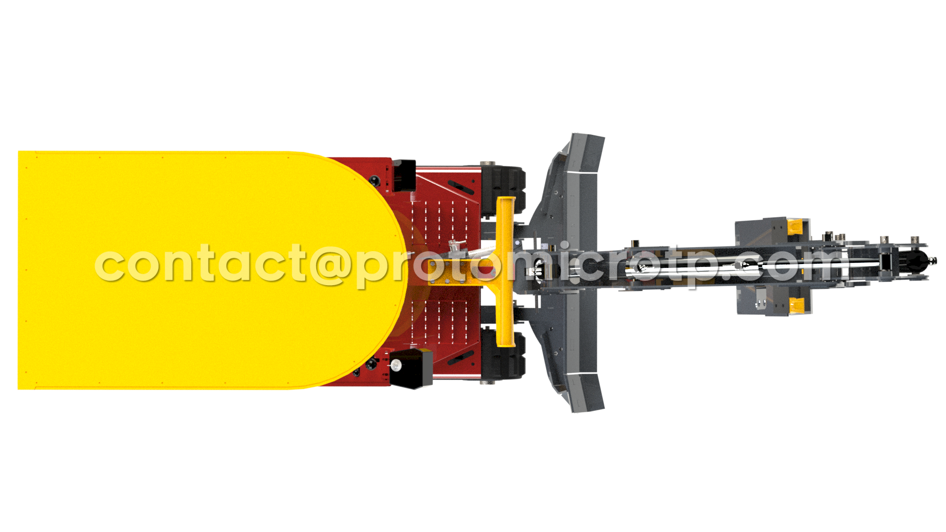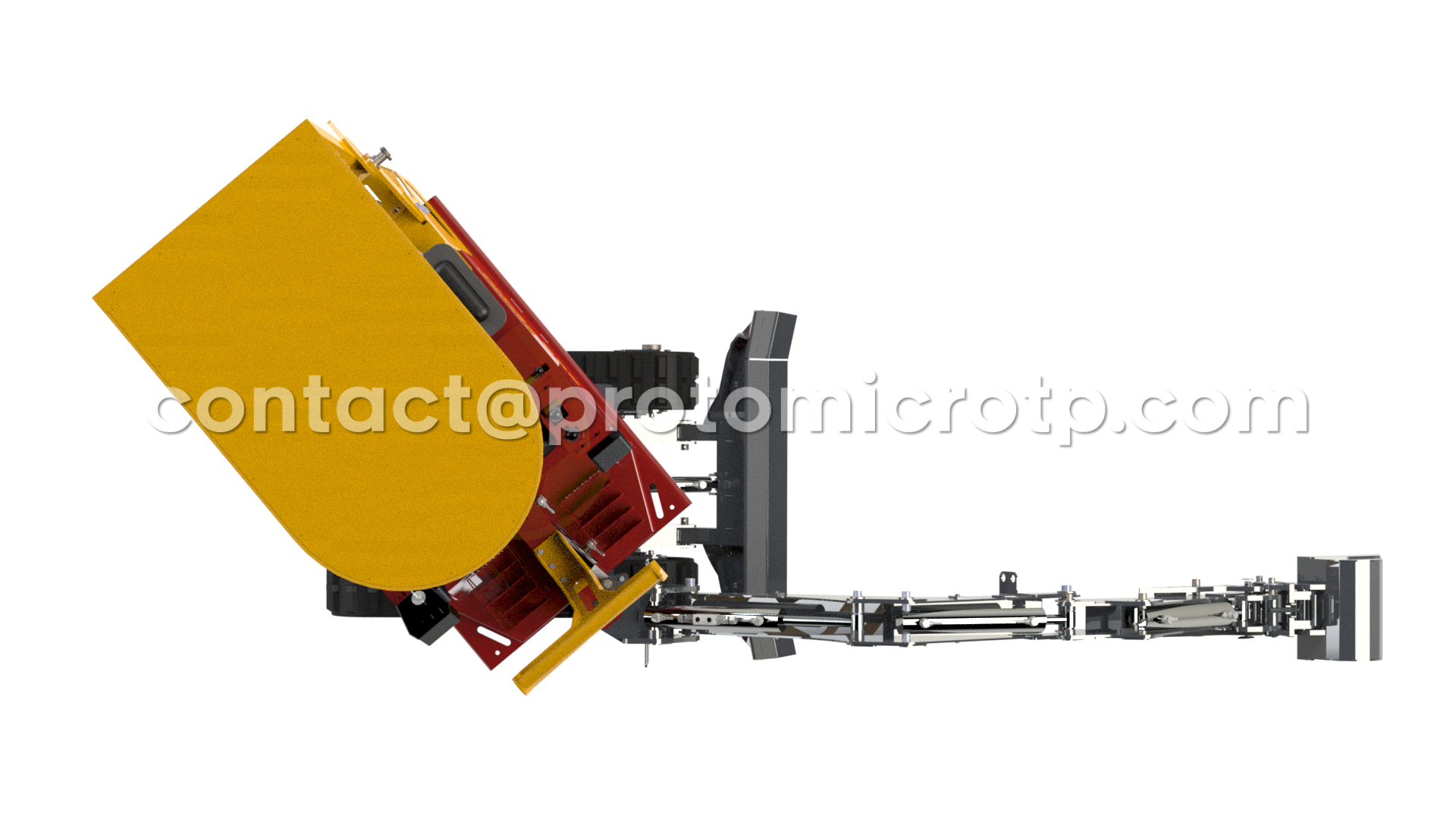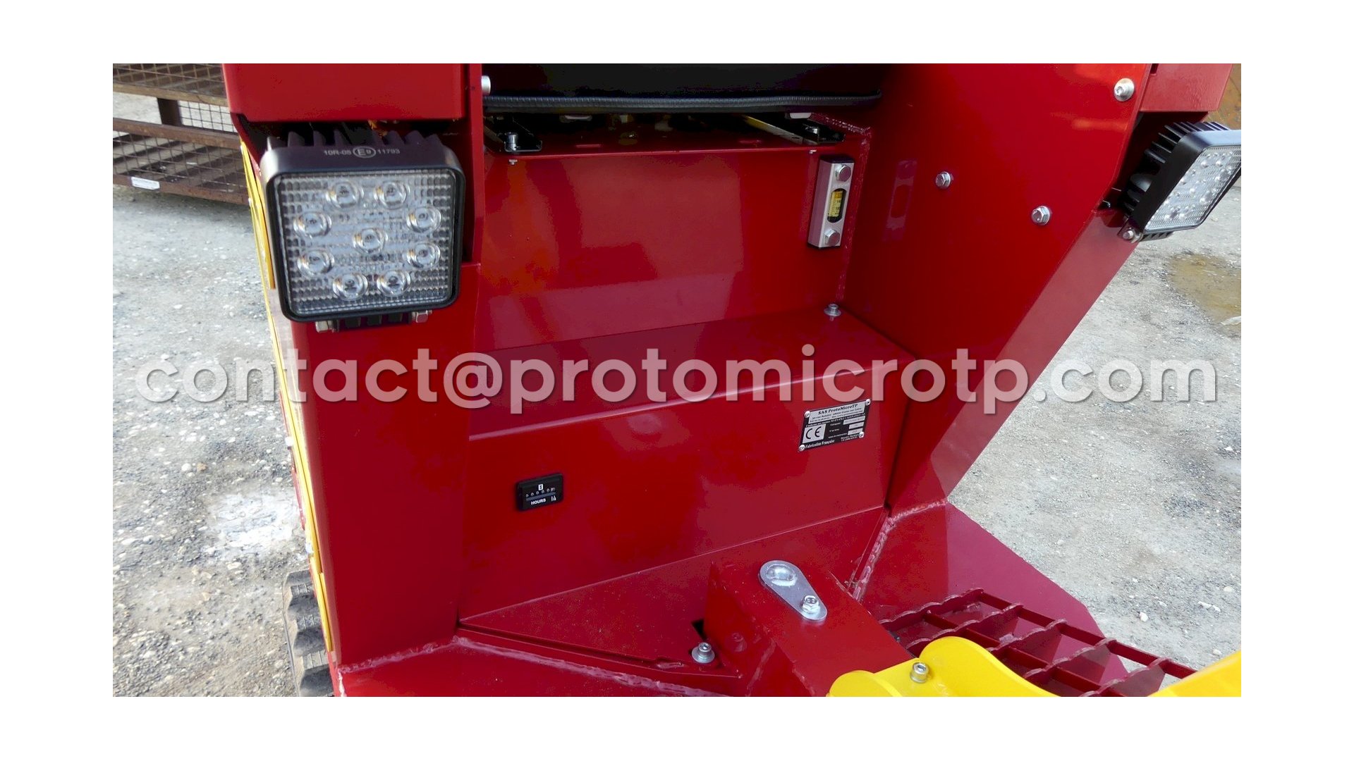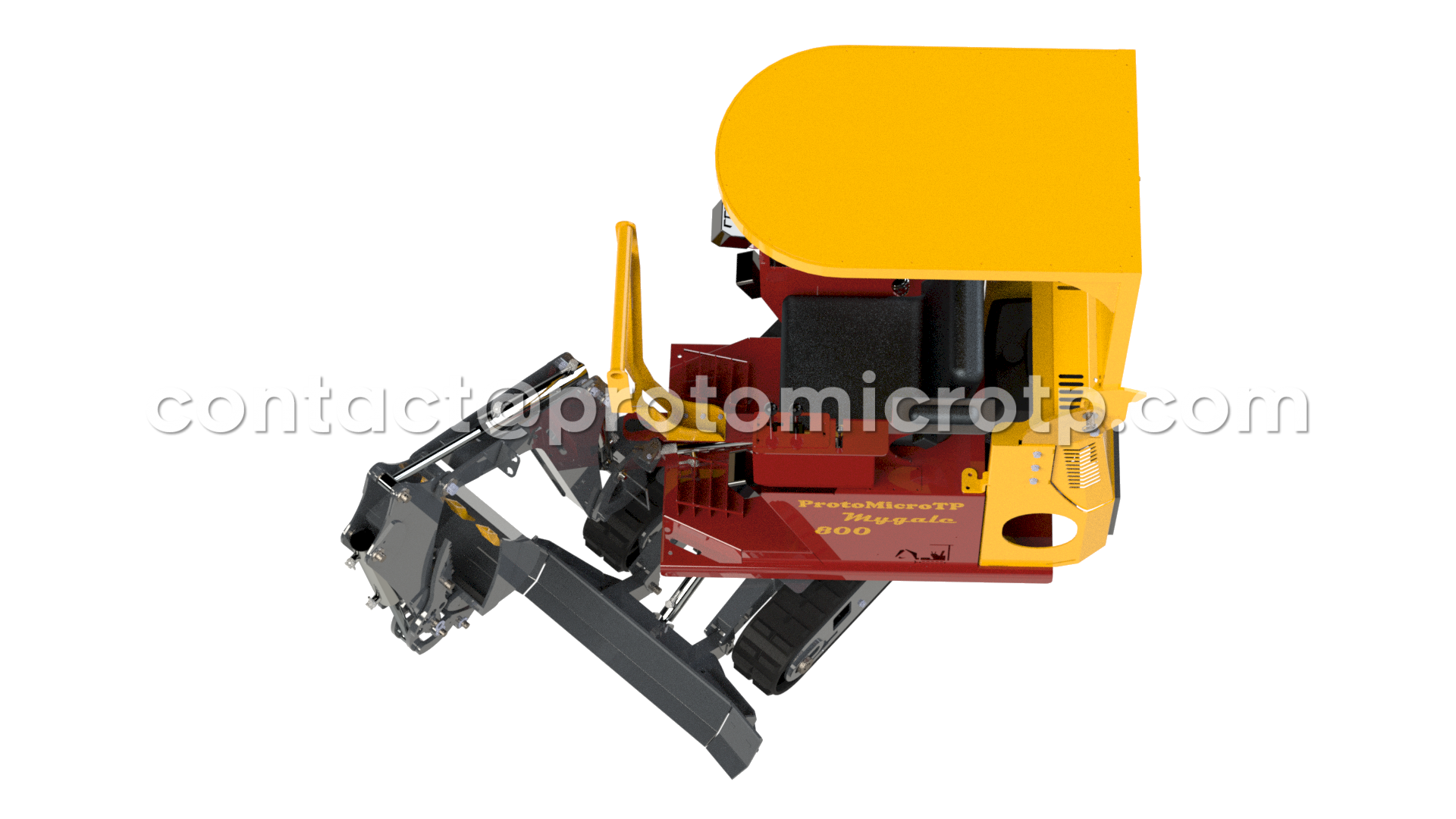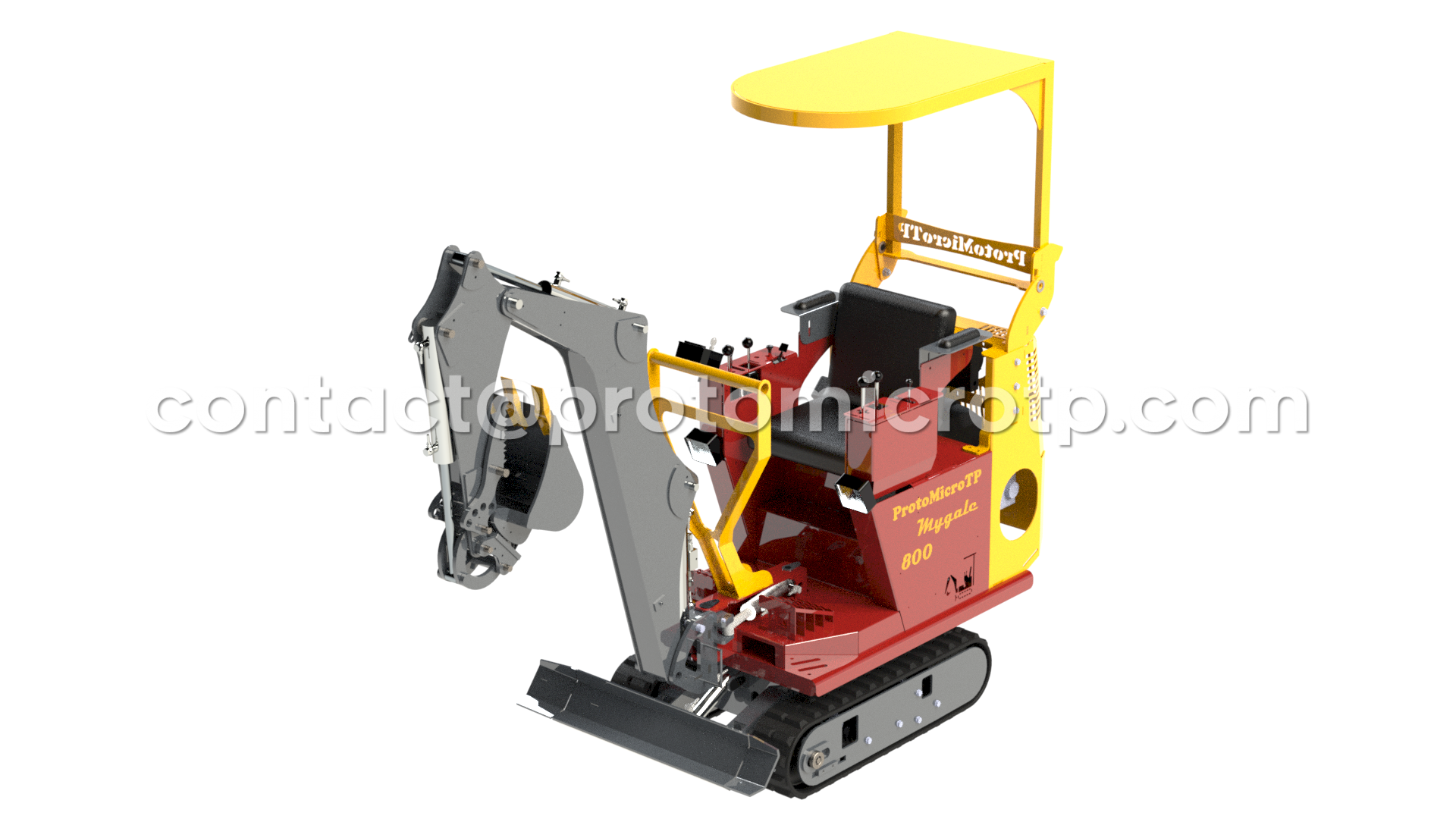 Modèle de milieu de gamme de la série Mygale, avec une largeur de 83cm, la Micro Pelle Mygale 800 Pro est dotée d'une tourelle pivotant à 360° et d'un pied de flèche à 110°,