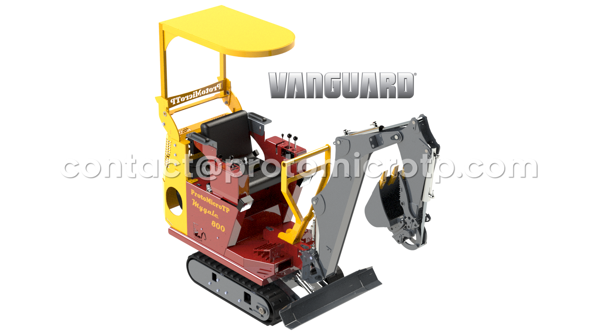 moteur bicylindre Vanguard Briggs & Stratton de 18ch, d'un canopi pliable ou démontable, d'une ligne hydraulique d'accessoires, d'une attache rapide pour les godets, d'un pouce mécanique et