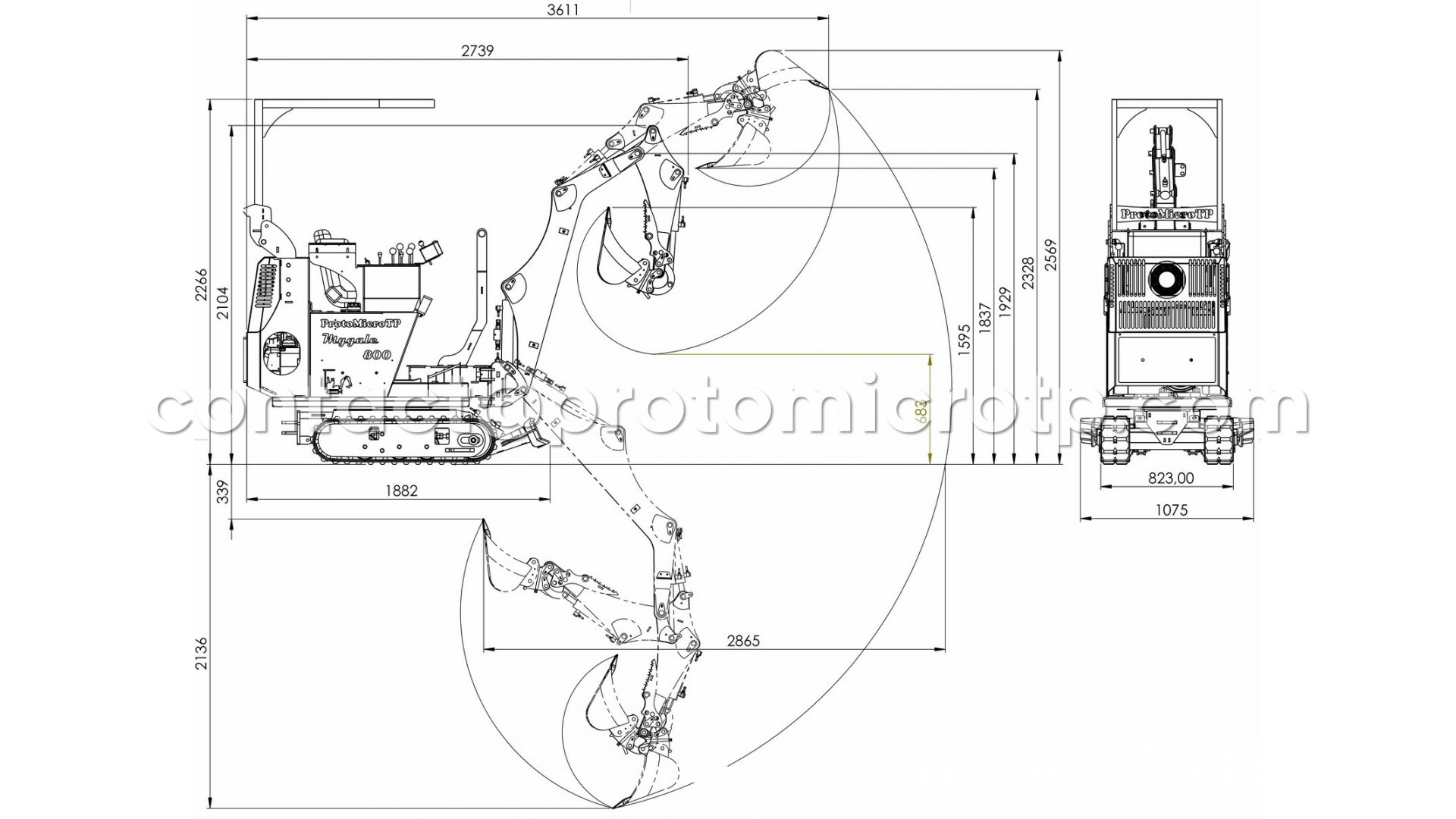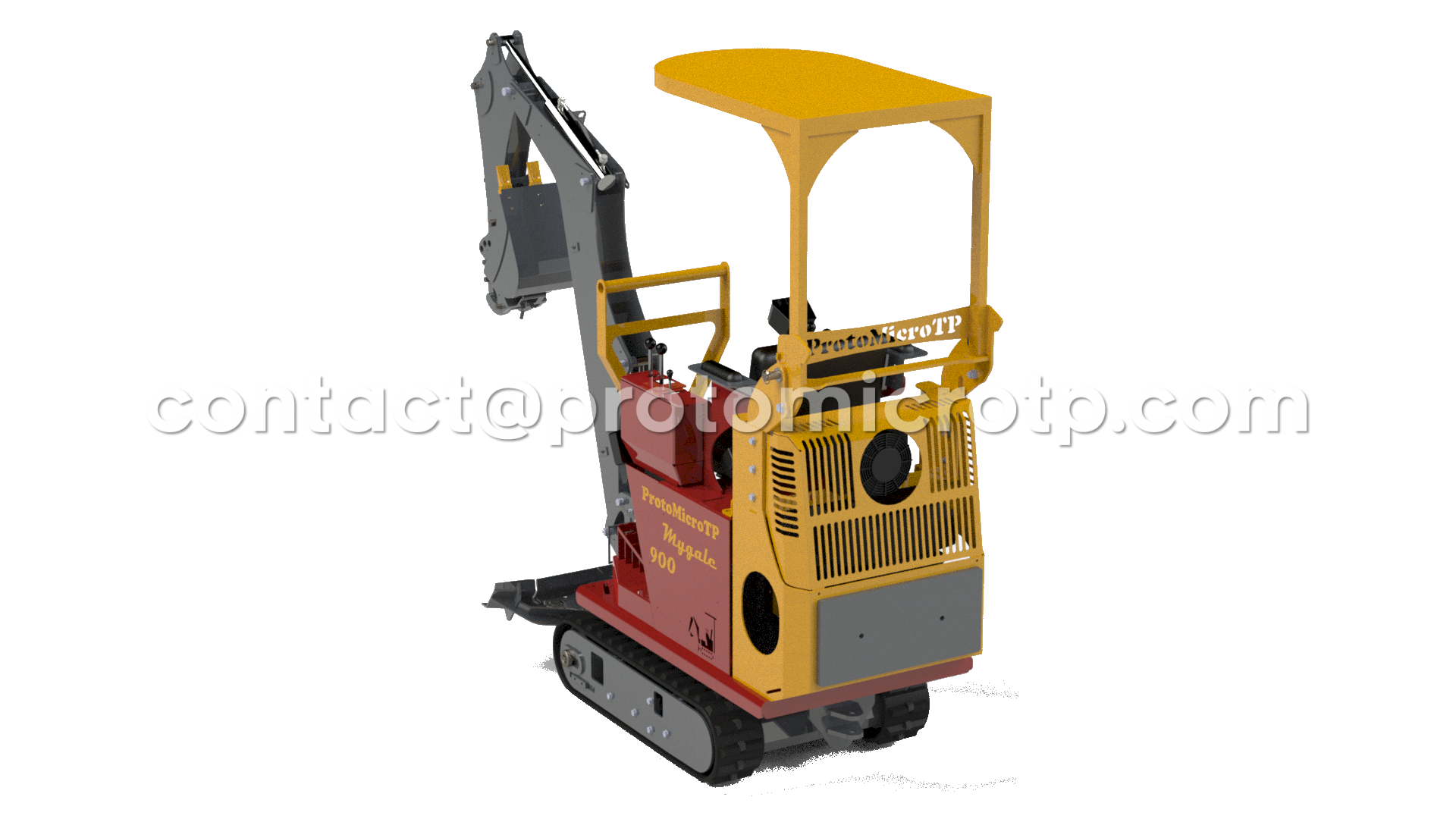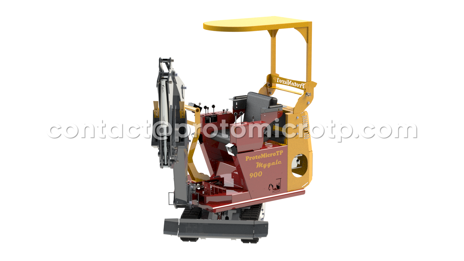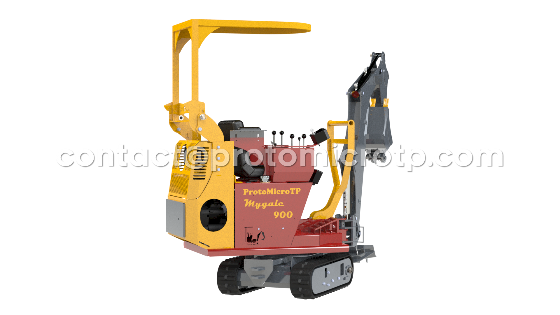 Modèle haut de gamme de la série Mygale avec une largeur de 83 cm, la Micro Pelle Mygale 900 possède une tourelle rotative à 360° et un pied de flèche à 110°, offrant la possibilité de travailler en déporté, par exemple à ras d'un mur. Elle est également dotée de deux lignes hydrauliques, dont une à grand débit indépendante, idéale pour utiliser des accessoires tels qu'un taille-haies sans perte de mouvement.