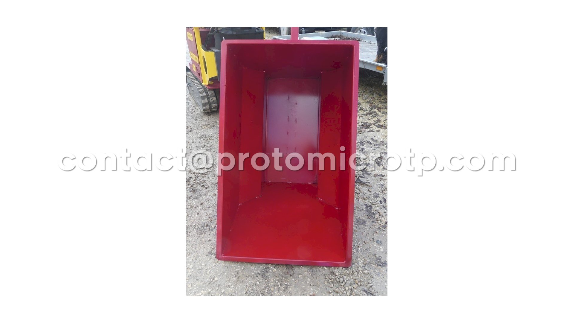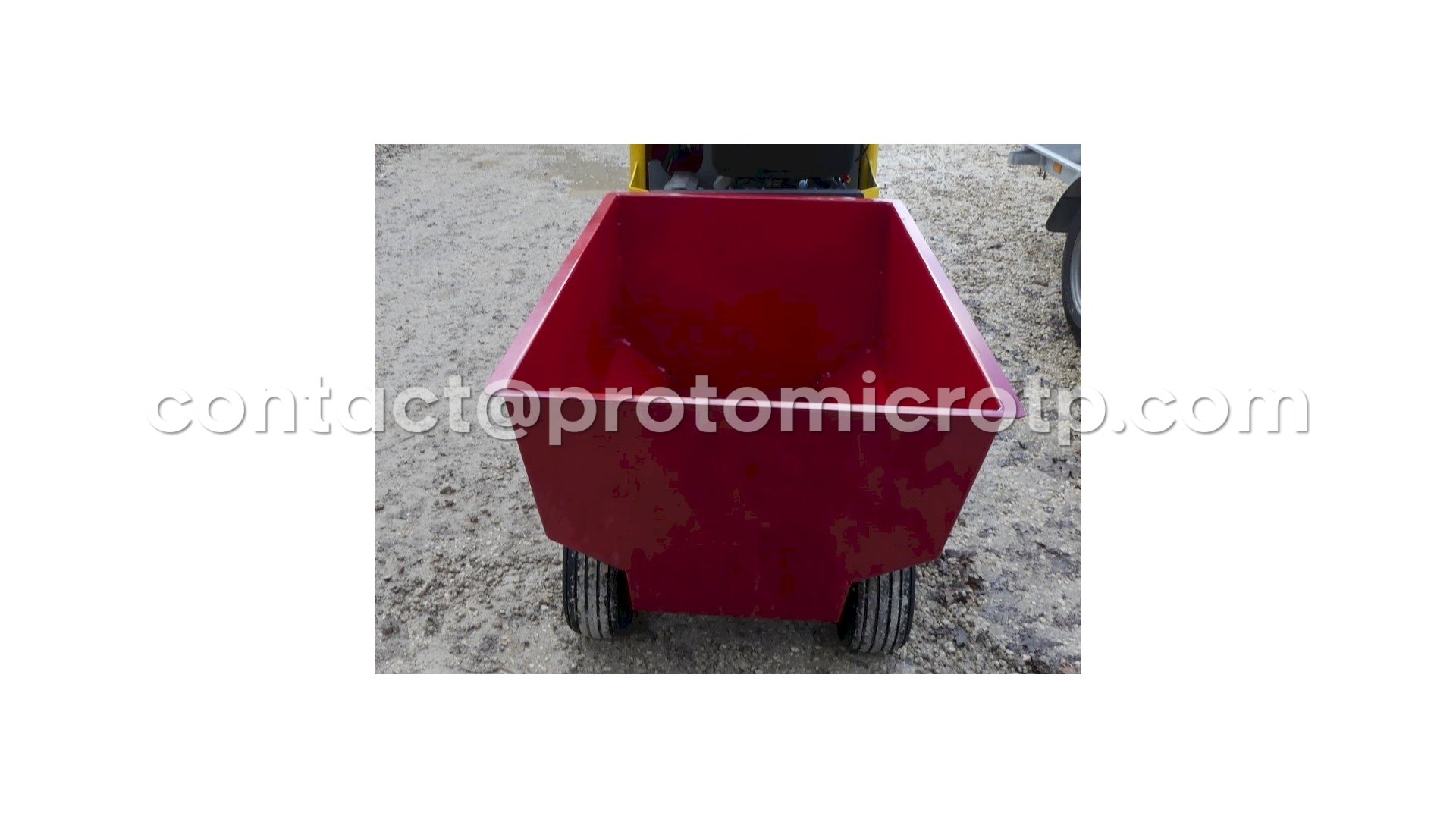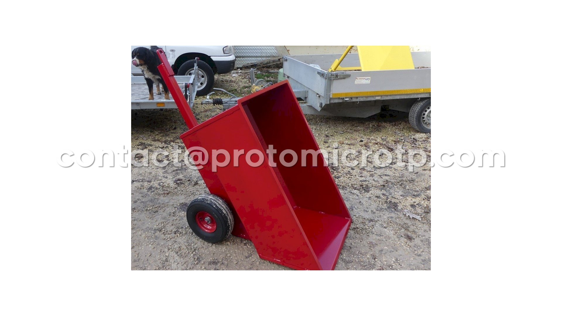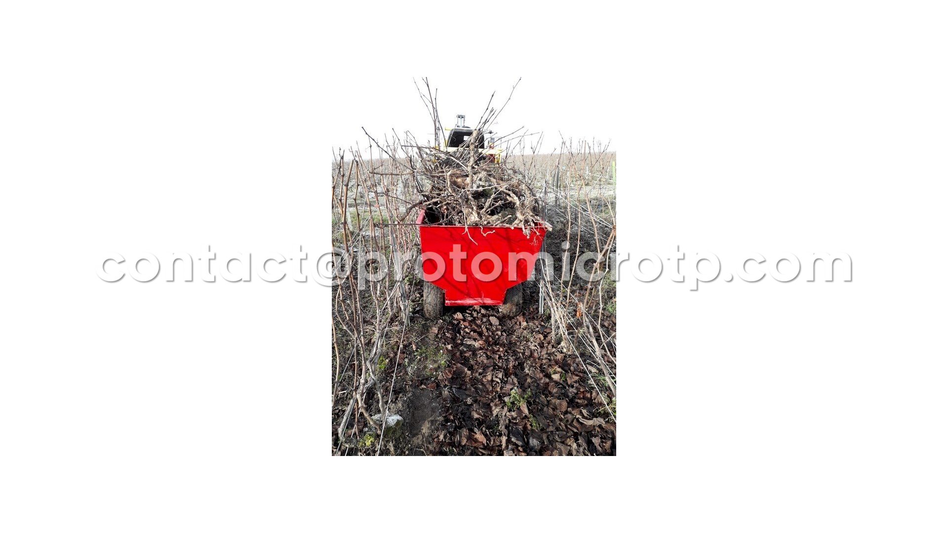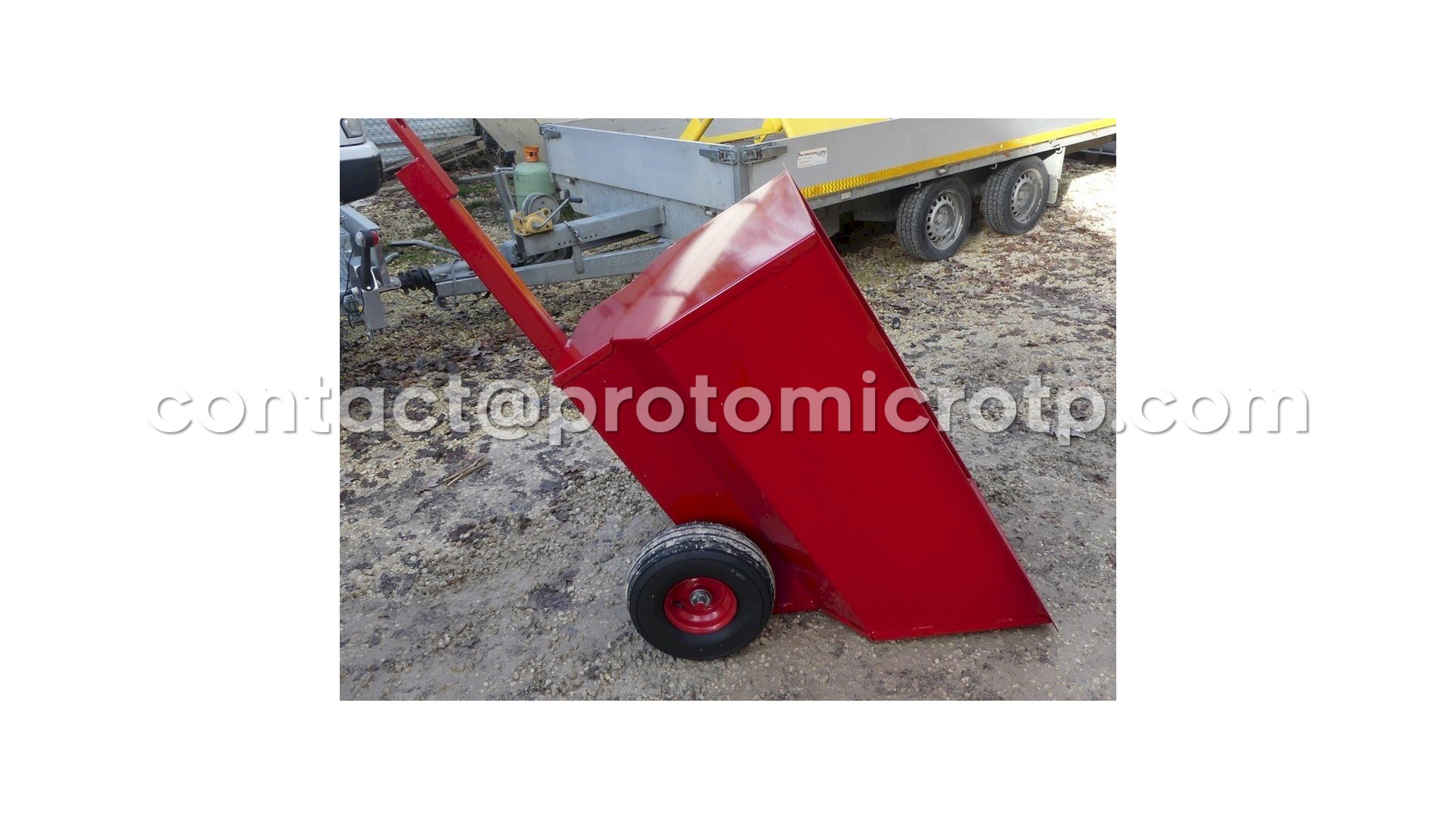 Remorque à atteler deriere une micro pelle, idéale pour le passage dans les vignes.